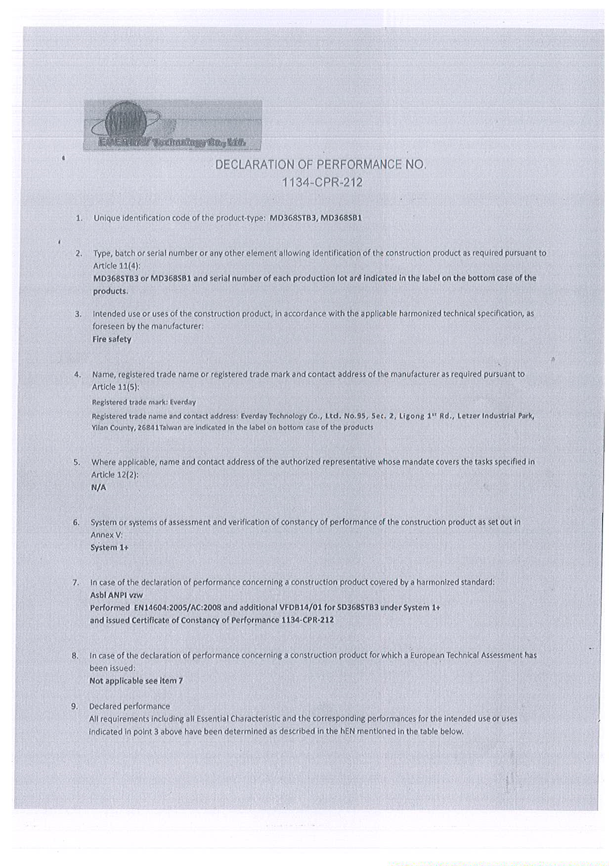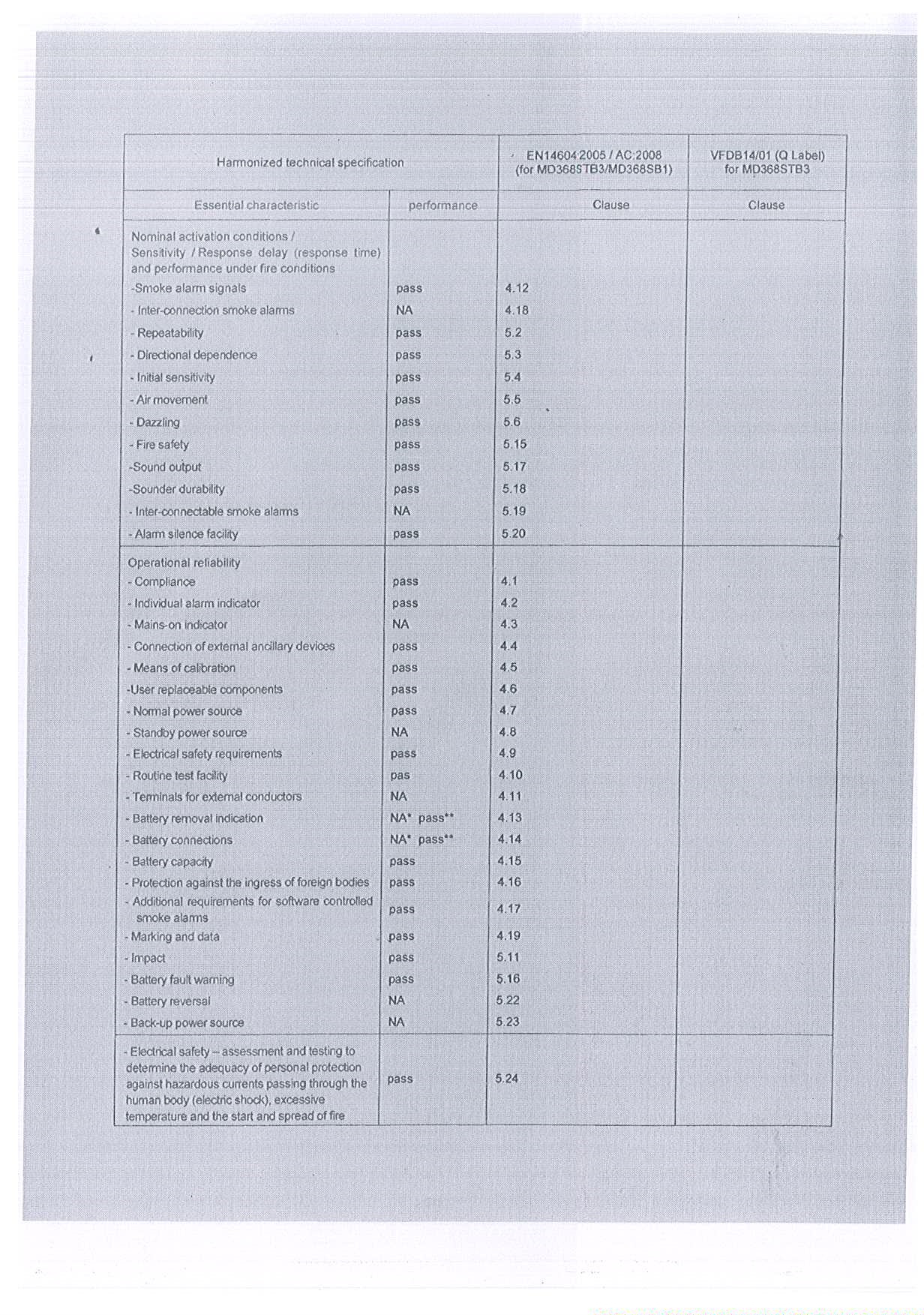 EN54-5 FT:A2S Refer to annex-Table 1  |